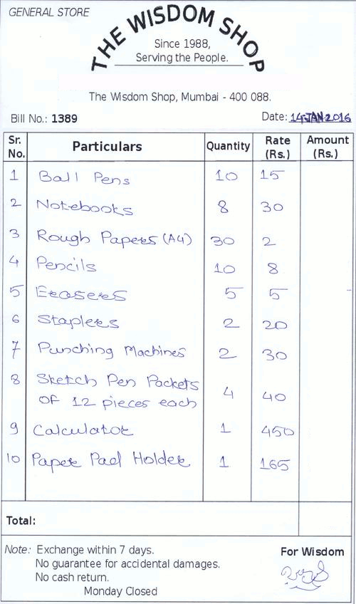 Sample bill for reference: