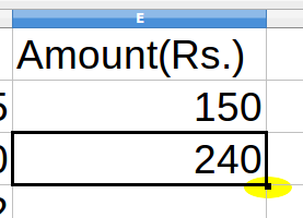 - Drag it down along the column "E", named as "Amount(Rs)", till we reach the cell "E11".