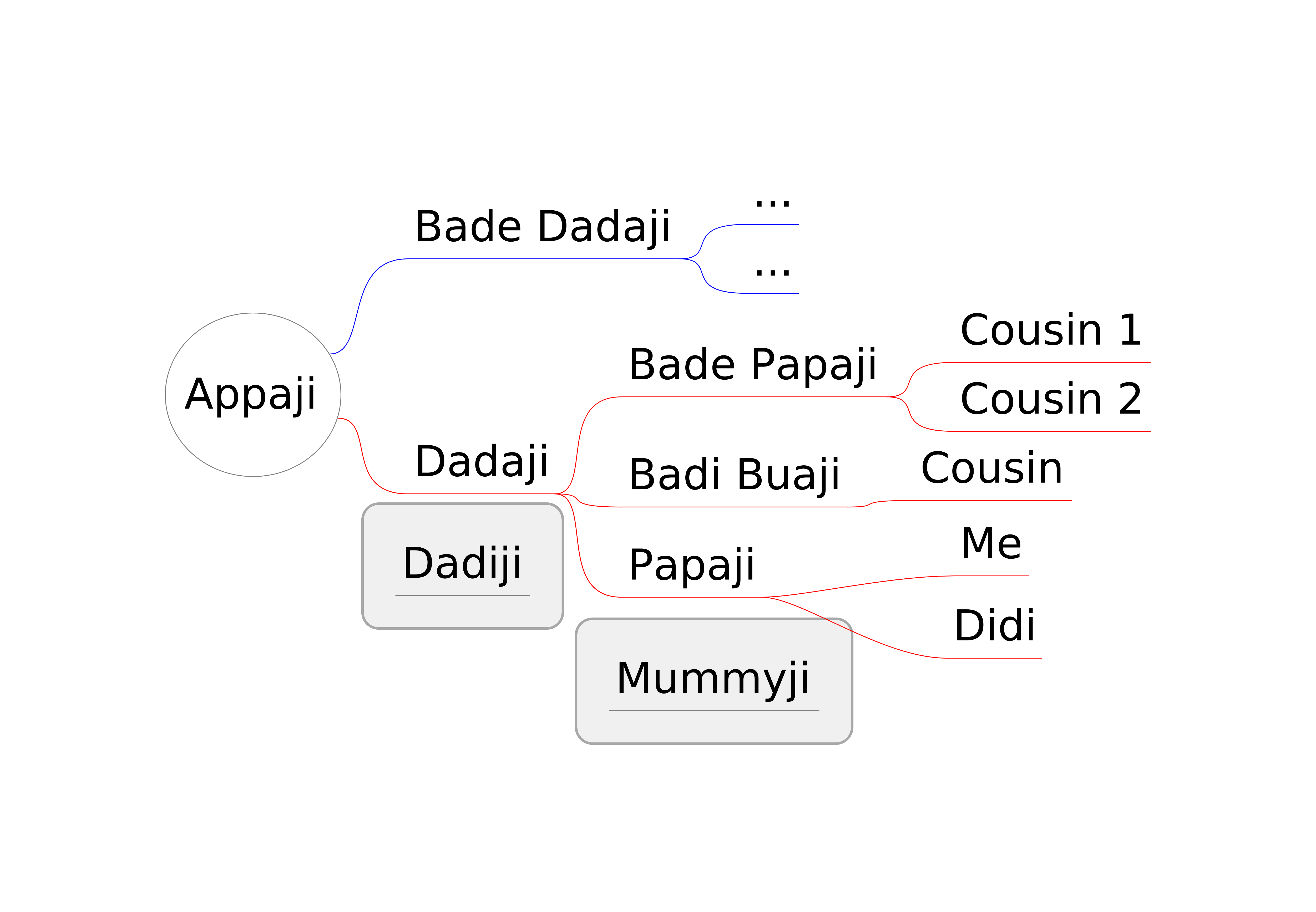 You will need to ask your parents, grandparents about your ancestors and their names. Go back as much as possible in terms of generations. Then you can find out about the children and brothers and sisters each one of them had. This way you can find all of your relatives. The mindmap that you will create from this information will help you visualise how big your family is!Make a plan for getting all the information that you need to do this and get going. You can choose to have different colors for female and male members of the family.