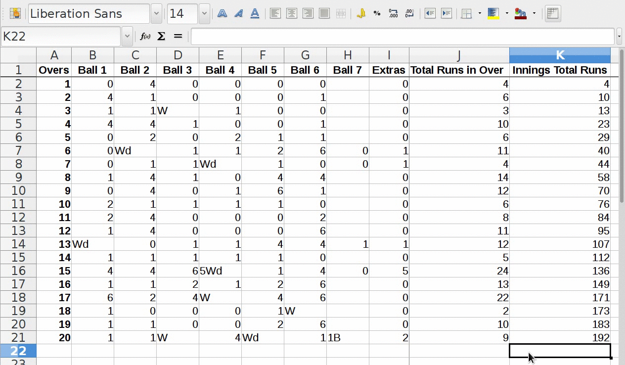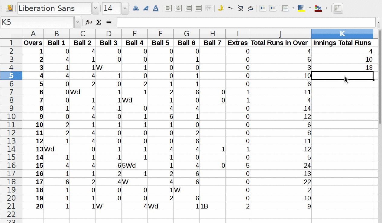 To calculate innings total runs after each over, we have to addcurrent over's runs into, innings total runs tillit's previous over.