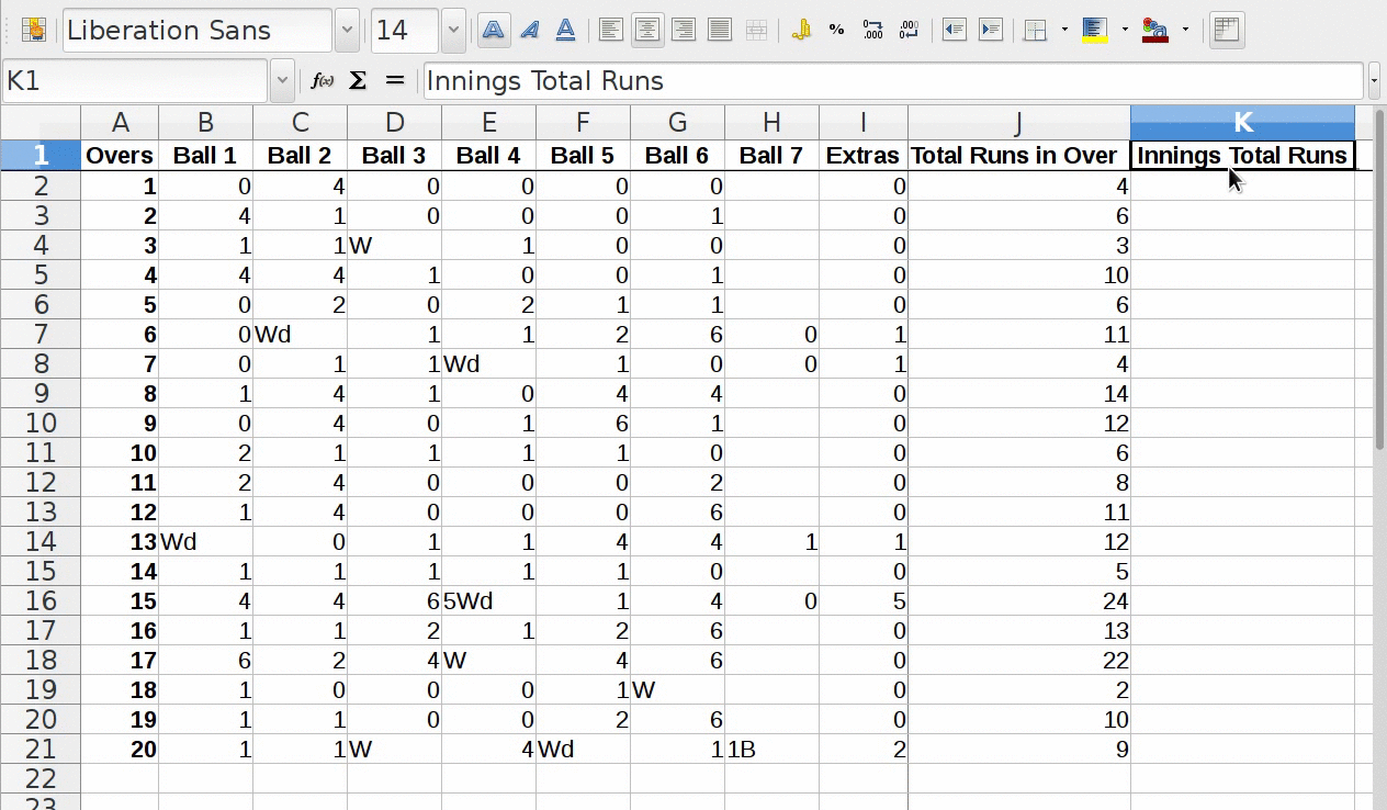 Now use auto-completion to reflect innings total for remaining cells of column.