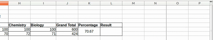 - Firstly we will go to cell "L6" where we want our Result to be displayed